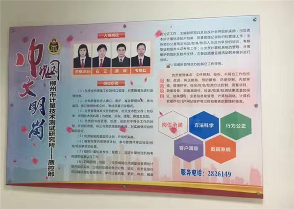 据悉,柳州市计量所质控部于2016年正式开始争创市级“巾帼文明岗”:一是领导重视,建立健全各项工作机制;二加强创建文化意识,齐心营造良好的创建氛围;三是注重以党的活动为契机,不断延伸服务触角,提高社会效应;四是带头发挥科研先锋作用 ,共创科研工作佳绩;五是学无止境,争优创先,积极发挥巾帼的先进模范作用,把这项活动持续、健康、深入地开展下去,充分发挥“巾帼文明岗”的示范作用,为推进“四个全面”战略布局、实现中国梦,建设“五美五好”柳州做贡献。