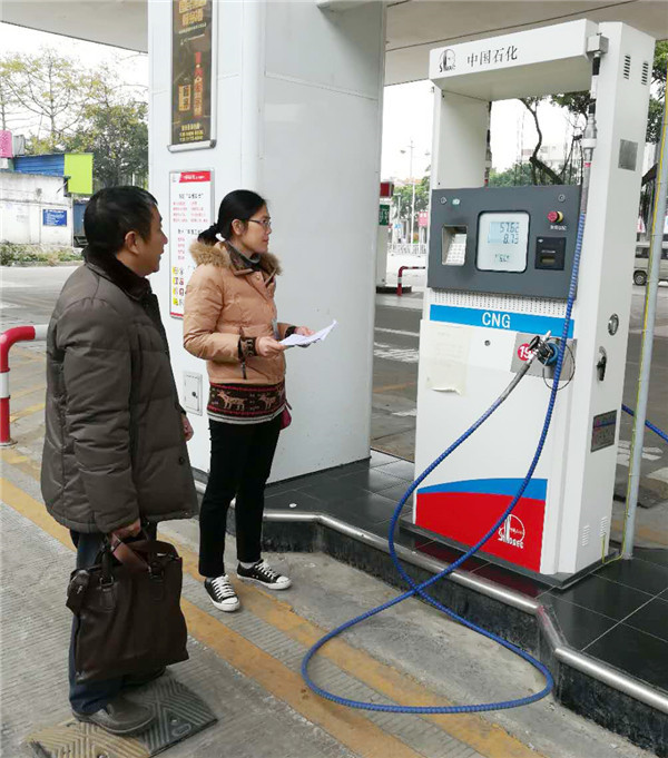 为加强法制计量管理,落实国家质检总局颁布的《压缩天然气加气机计量检定规程》,促进压缩天然气加气机的依法依规管理,确保贸易结算,近日,柳州市质量技术监督局对辖区内用于贸易结算的压缩天然气加气机显示更改情况进行检查。