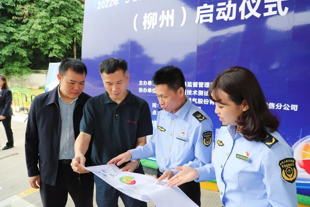 5月20日上午,柳州市市场监管局举办“5·20世界计量日”宣传活动暨广西智慧监管系统(柳州)启动仪式。启动仪式上,向中国石油天然气股份有限公司广西柳州销售分公司桂柳加油站正式颁发柳州第一个智慧监管强制管理计量器具唯一性编码。