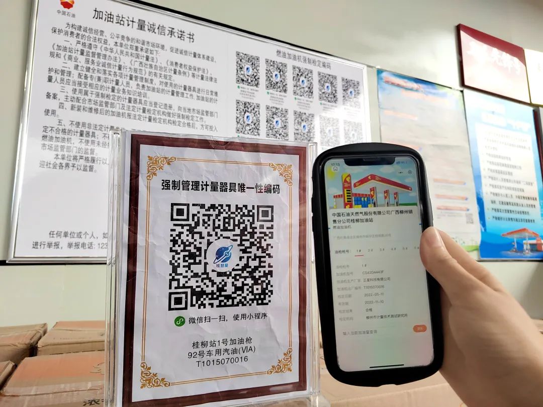 目前,柳州市同步抽取了中国石油天然气股份有限公司广西柳州销售分公司桂柳加油站和中国石化销售股份有限公司广西柳州西江加油站2家加油站使用的燃油加油机,以及20台出租车计价器,正式启用强制管理计量器具唯一性编码。