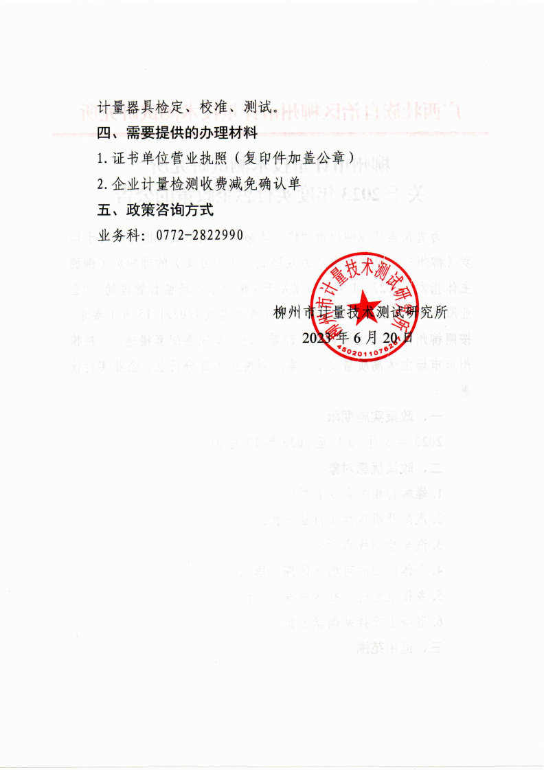 柳州市计量技术测试研究所关于2023年度实行惠企政策的公告